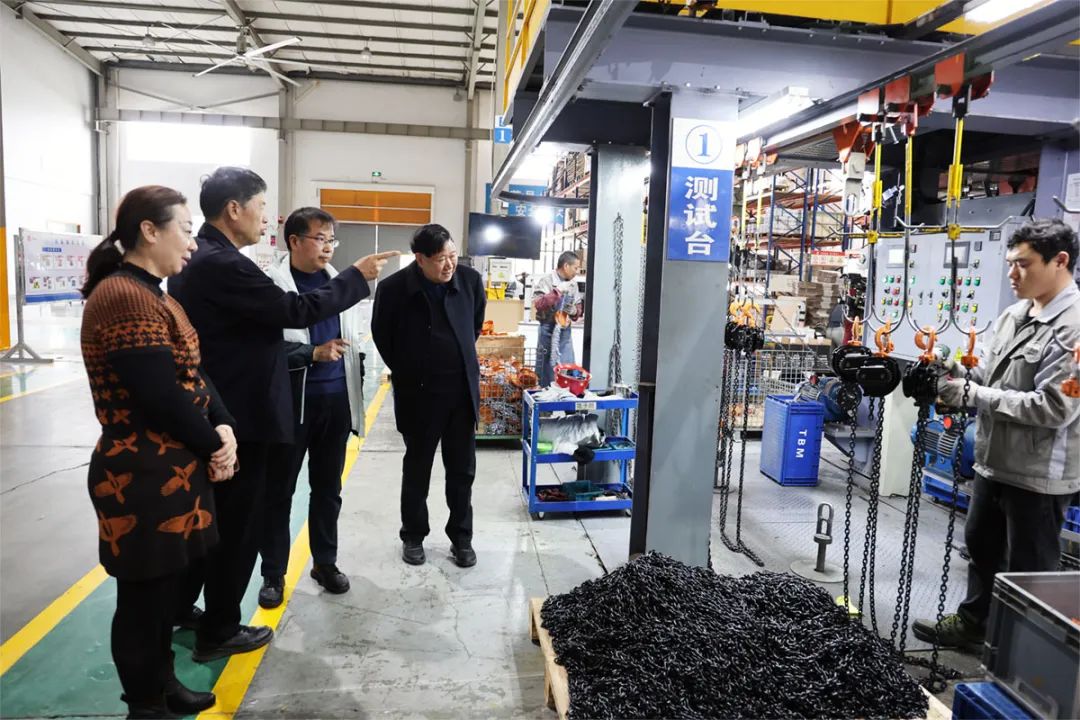 圖:參觀考察雙鳥機(jī)械手動(dòng)葫蘆裝配車間