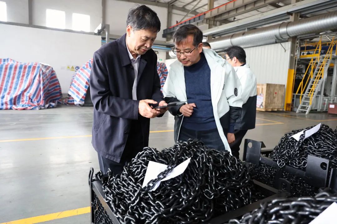 雙鳥集團(tuán)張文忠董事長(zhǎng)、盛嘉慶總經(jīng)理陪同王會(huì)長(zhǎng)一行參觀了雙鳥機(jī)械總裝車間、起重鏈條制造車間。