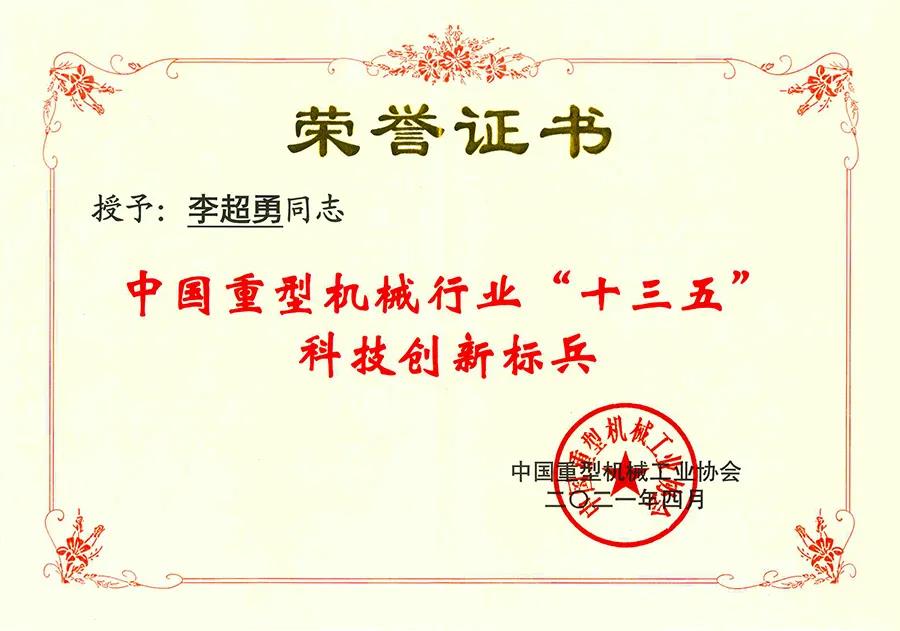 4月16日,中國重型機械工業(yè)協(xié)會八屆二次會員代表大會暨理事會在北京召開,會議對中國重型機械工業(yè)協(xié)會“十三五”期間在科技創(chuàng)新方面取得的成績進行總結表彰,雙鳥機械榮膺“中國重型機械行業(yè)'十三五'科技創(chuàng)新標兵企業(yè)”。作為中國重型機械工業(yè)協(xié)會副理事長單位,雙鳥機械總經理盛嘉慶應邀出席會議并領獎。雙鳥機械技術部經理助理李超勇榮獲“中國重型機械行業(yè)'十三五'科技創(chuàng)新標兵”。