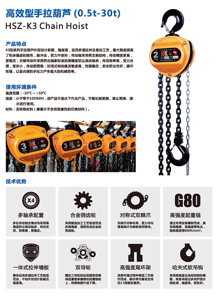 8.起重鏈條是特殊合金鋼制作并經(jīng)過(guò)熱處理,不能私自進(jìn)行焊接或改裝。