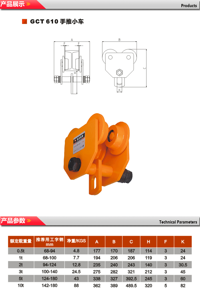 GCL/GCT810系列小車(chē)選用了全新的高強(qiáng)度低合金結(jié)構(gòu)鋼,確保4倍安全載荷,輕巧、安全、安裝方便、是目前最為輕巧小車(chē)之一。